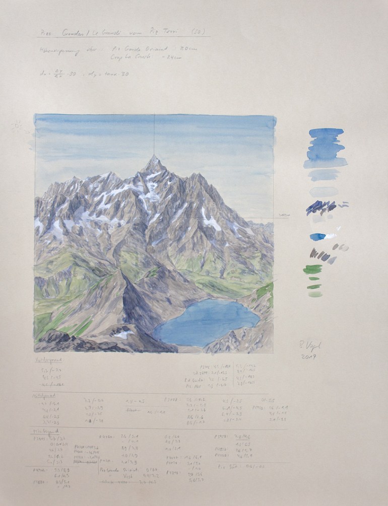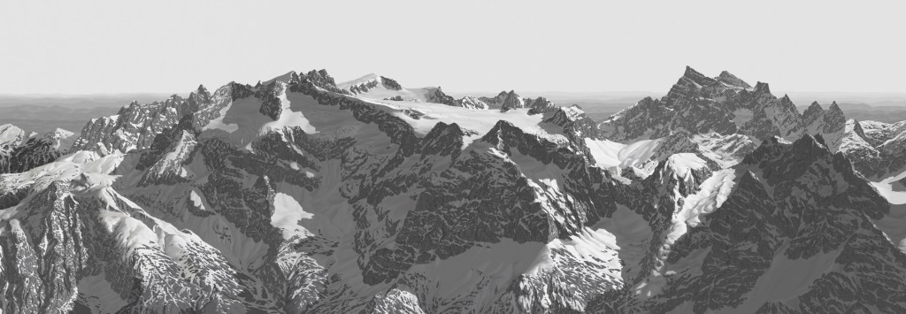 Die Pizs Gronds (le Grandi) bilden meine dritte erfundenen Berglandschaft. Nahe des Gotthardpasses in der Schweiz habe ich ein bis zu 5062 m hohes Bergmassiv gestaltet, an dem sämtliche alpine Klischees und Mythen kulminieren…