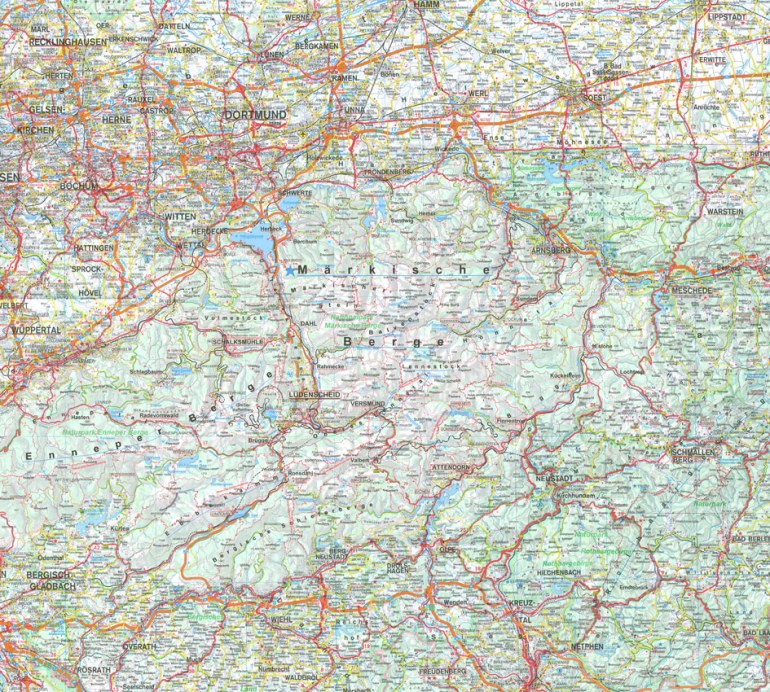 Die Märkischen Berge habe ich als zweite fiktive Berglandschaft entwickelt. Dazu habe ich den Märkischen Kreis südöstlich meiner Heimatstadt Dortmund zu einem bis zu 3084 m hohen Hochgebirge umgestaltet und mit der Idee gespielt, was wäre wenn ein solcher Naturraum direkt auf einen Industrieraum wie das Ruhrgebiet prallen würde…