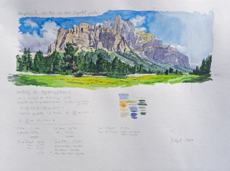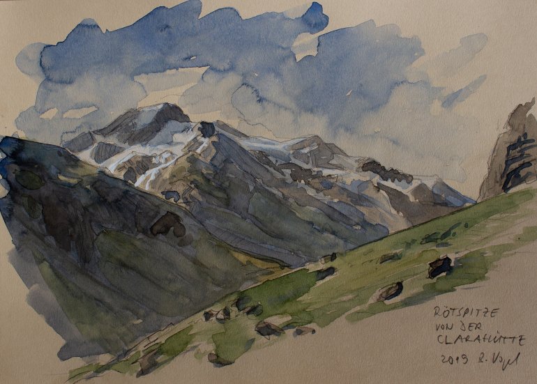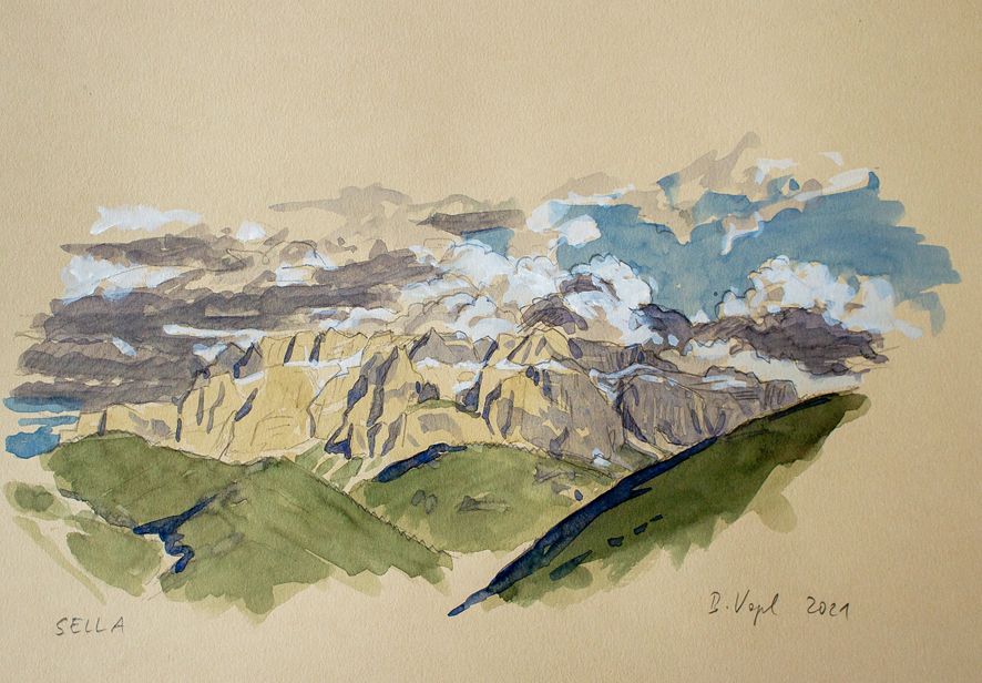 Auch meine Kunst braucht Inspiration. Diese hole ich mir im Urlaub, wo ich auf Wanderungen meistens Aquarellfarben, Pinsel und einen Malblock dabei habe um besondere Ansichten festzuhalten. In jüngster Zeit kommen durch Aufträge auch große Veduten in Öl dazu…