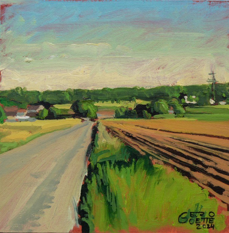 Gero Goette habe ich auf einer Wanderung in seiner Heimat, den Märkischen Bergen kennen gelernt. Er hat in der Sannenmark Kunst studiert und ist in der Lage zwischen den fiktiven und realen Welten zu wandeln und stellt diese derzeit insbesondere per plein-air-Malerei dar.